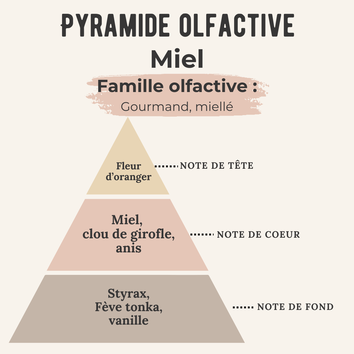 Le miel, généreux et onctueux, se marie au clou de girofle et à l’anis pour un cœur gourmand et épicé, à la fois chaud et réconfortant.